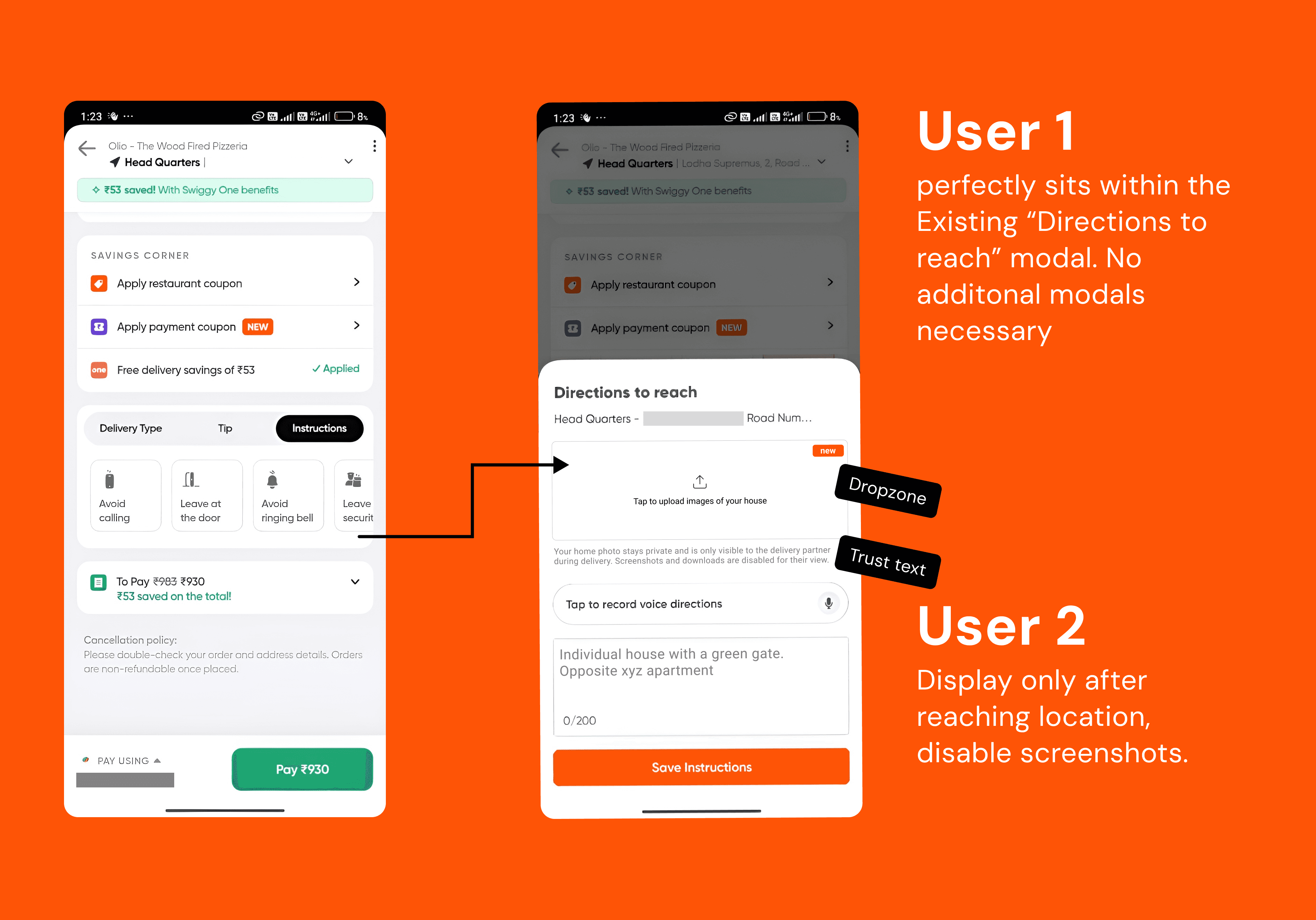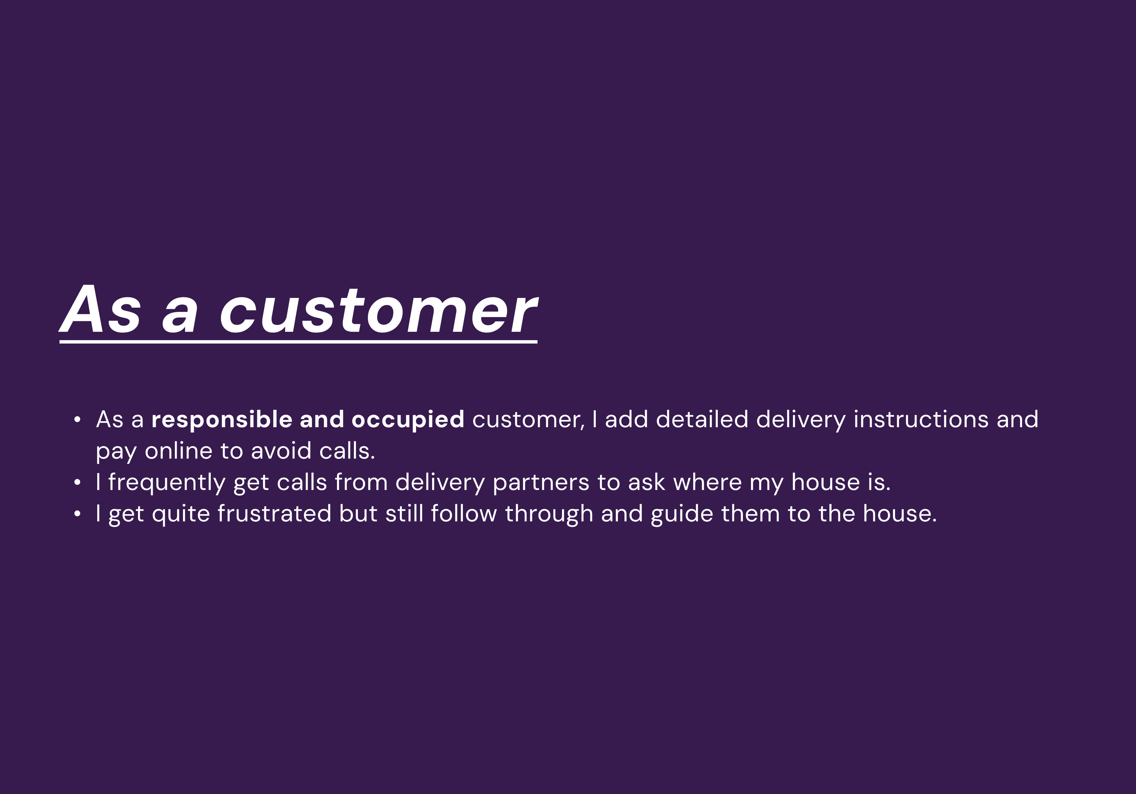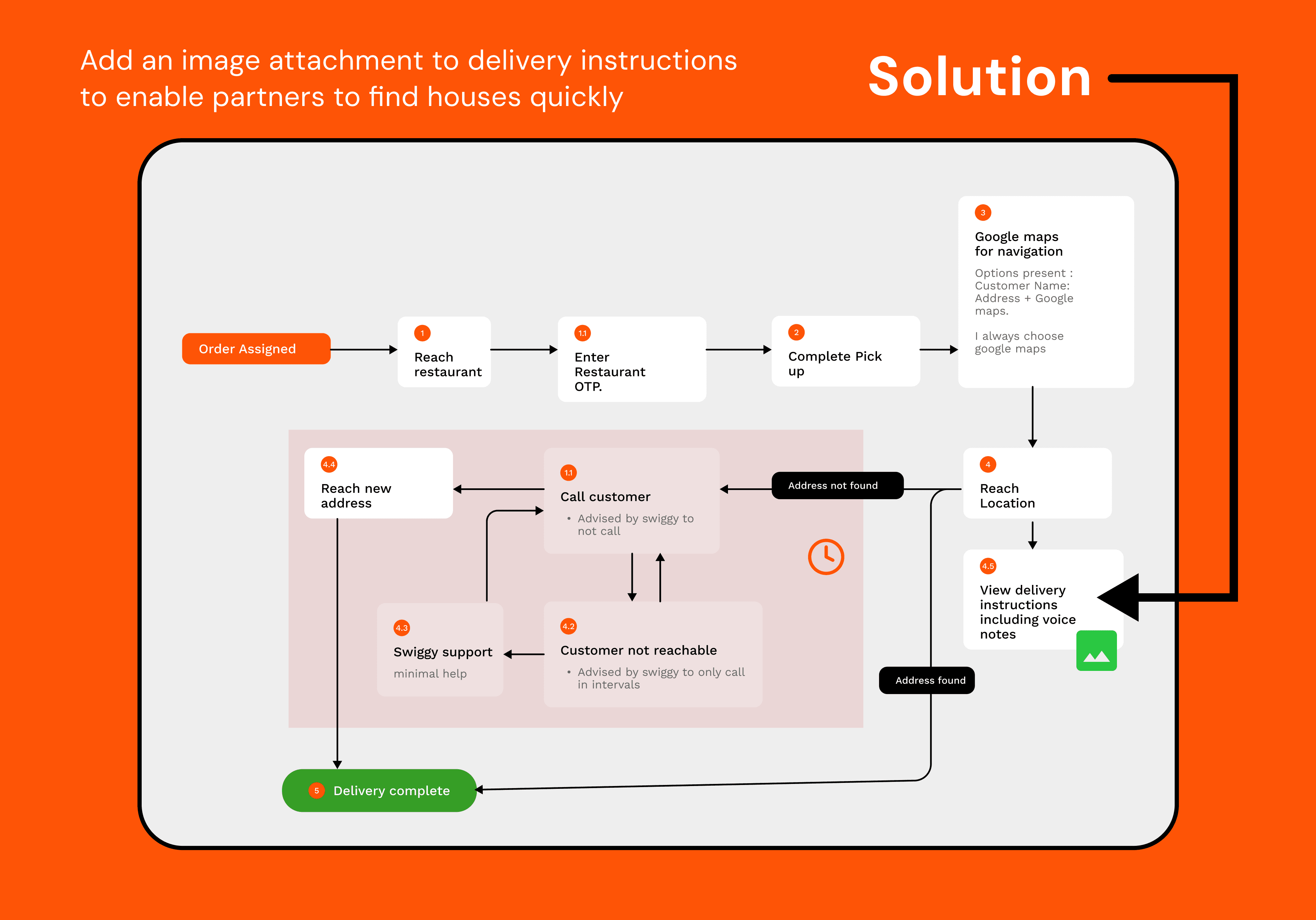 This case study was my attempt to fix that shared pain. I wanted to test if a simple feature allowing customers to upload a photo of their home could help partners identify locations faster, reduce calls, and make the delivery smoother for both sides.