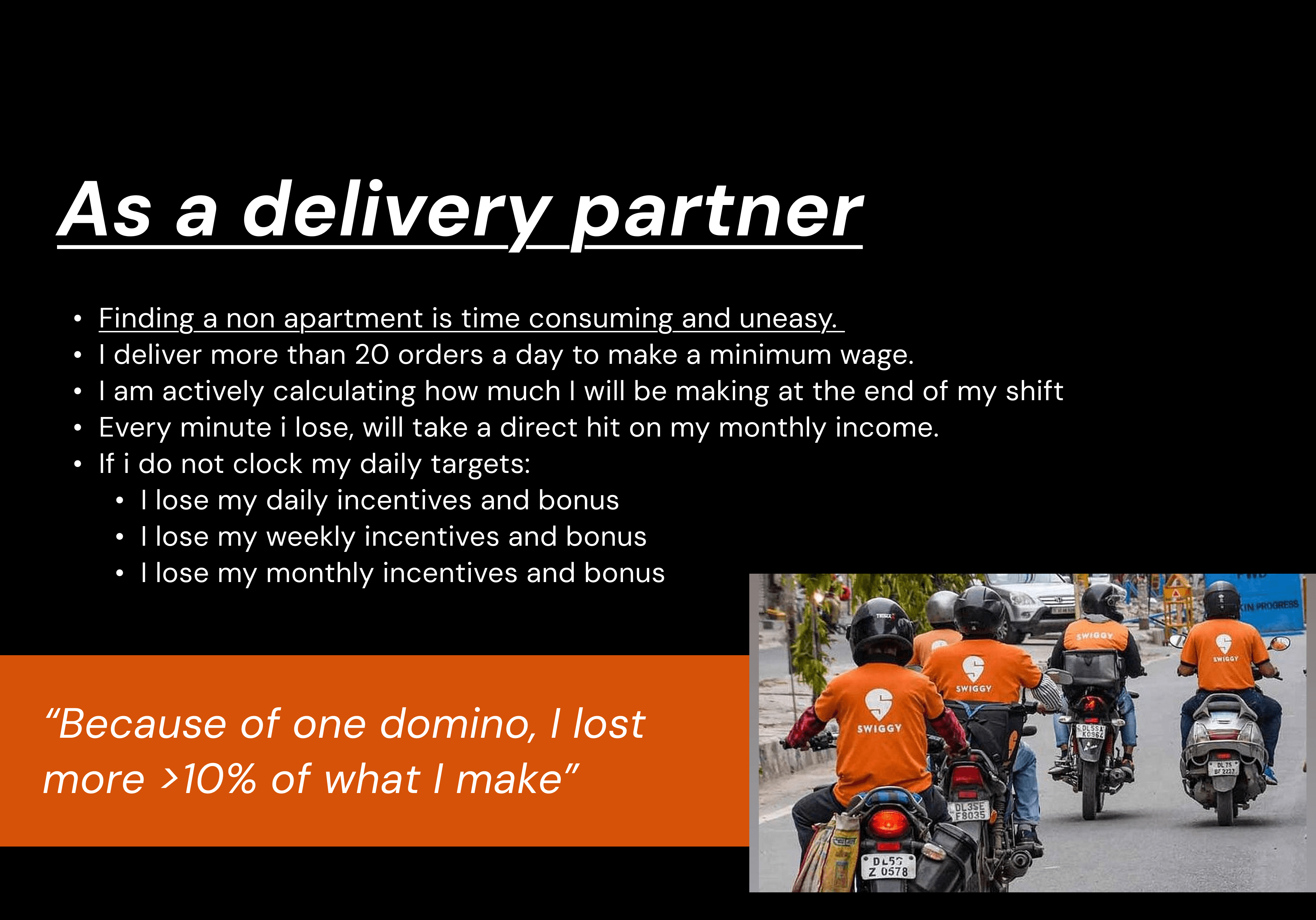 As a customer, I still get an average of three missed calls per order about where my house is. My address is correct, my pin is accurate, I have added detailed notes and voice instructions, and my house is right opposite a landmark mentioned in the instructions. Yet, delivery partners often end up circling until I wave from my balcony.